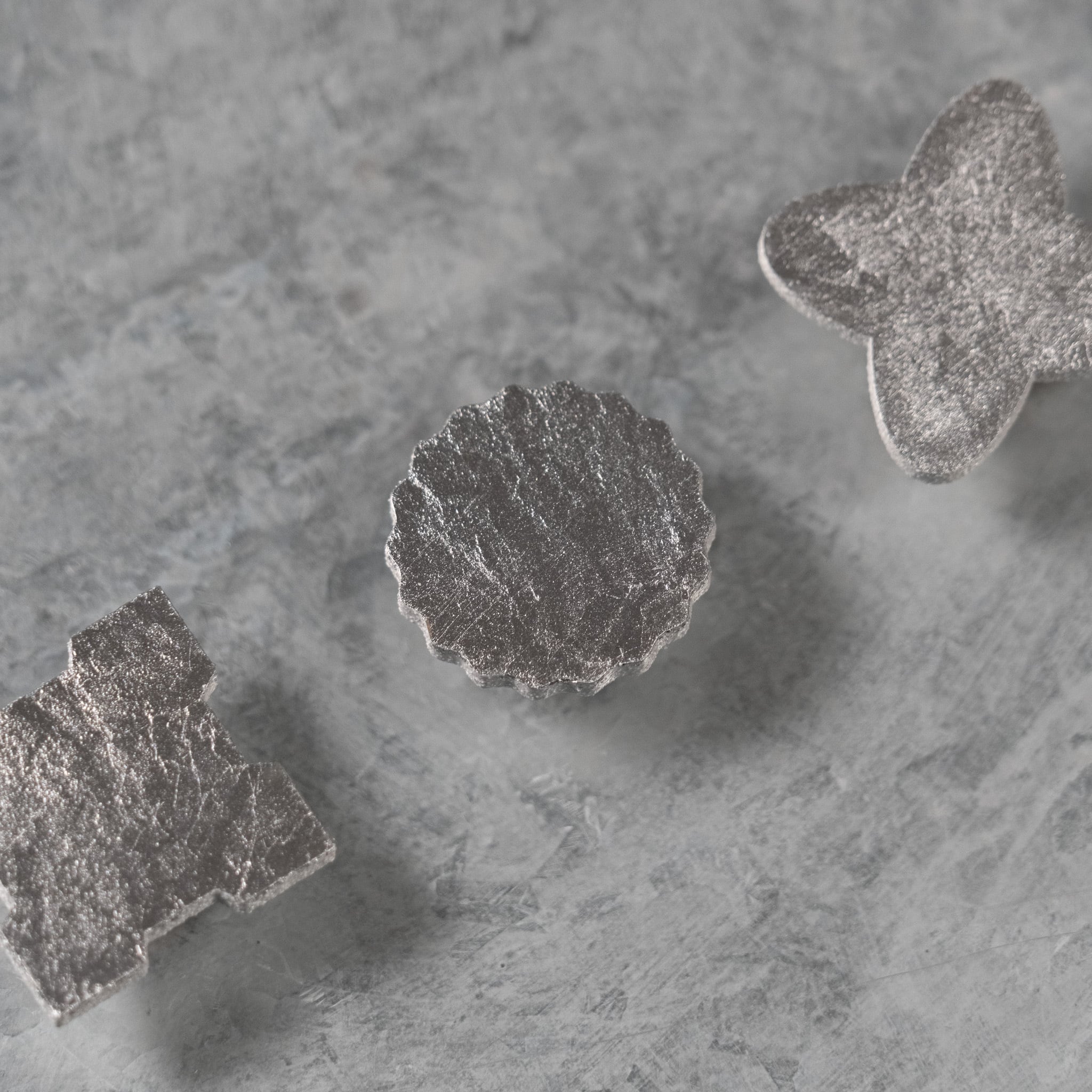 鏡のように強く反射するのではなく、わずかに曇りを含んだ銀の質感は、時間の経過や光の角度によって表情を変える仕上げとなっています。